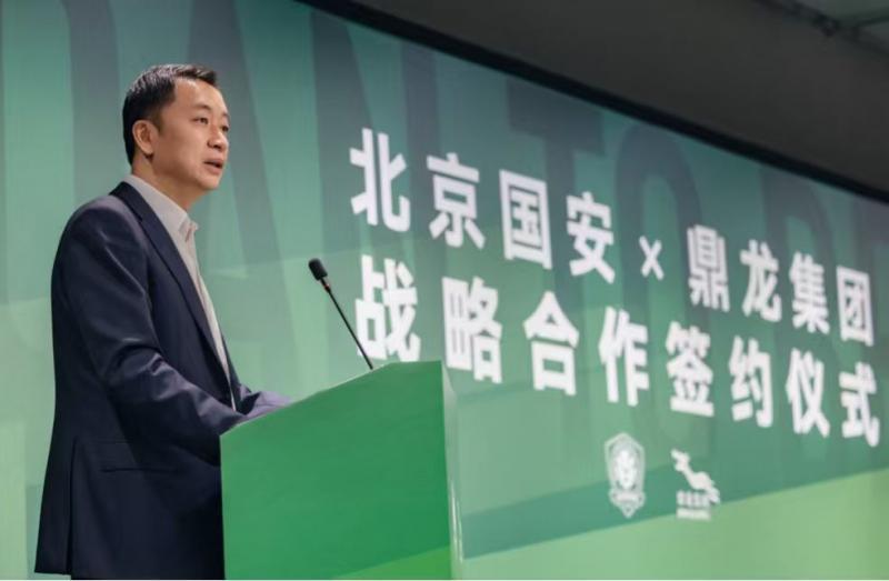 鼎龙集团执行董事龙晓方先生在讲话中强调:“能与北京国安携手是鼎龙的荣幸,更是时代赋予我们的机遇。此次合作,我们将共同打造国家级冬训基地和国际足球文化产业园。依托鼎龙湾的滨海资源与高端酒店群,为国安将士们提供从训练到康复的全链条保障,让球员在纯天然氧吧中蓄力出征。同时,我们还将融合国安的历史底蕴与鼎龙湾的文旅流量,打造球迷朝圣地,开创文体旅融合新典范。鼎龙集团将倾注核心资源,不求短期回报,只愿为中国足球基础建设贡献绵薄之力,为鼎龙湾注入体育灵魂。”
