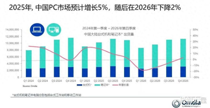 根据知名调研机构Omdia的调研数据,国内PC市场在2025年第三季度的同比增长达到2%,出货量为1130万台。尤其让人出乎意料的是,台式机的同比增长远高于PC增长速度在线配资机构,为8%,出货量为330万台。该机构根据此前三个季度的数据预测,截止年底,中国PC市场的出货量将达到4150万台,增长率为5%。同时,进入2026年之后,PC市场的增长速度将下降。